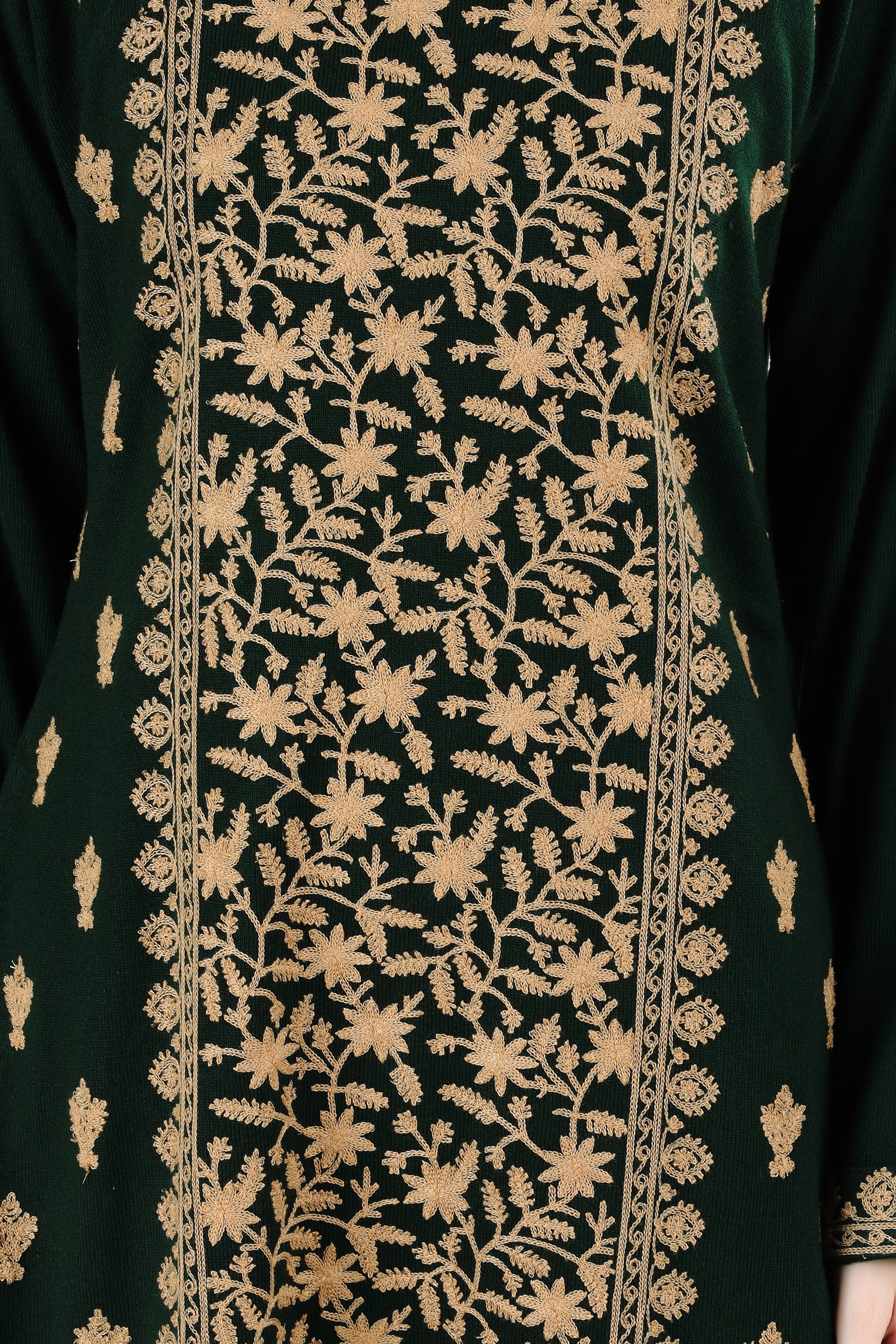 Dark Green Luxury Embroidered Kurti Set with Gold Motifs