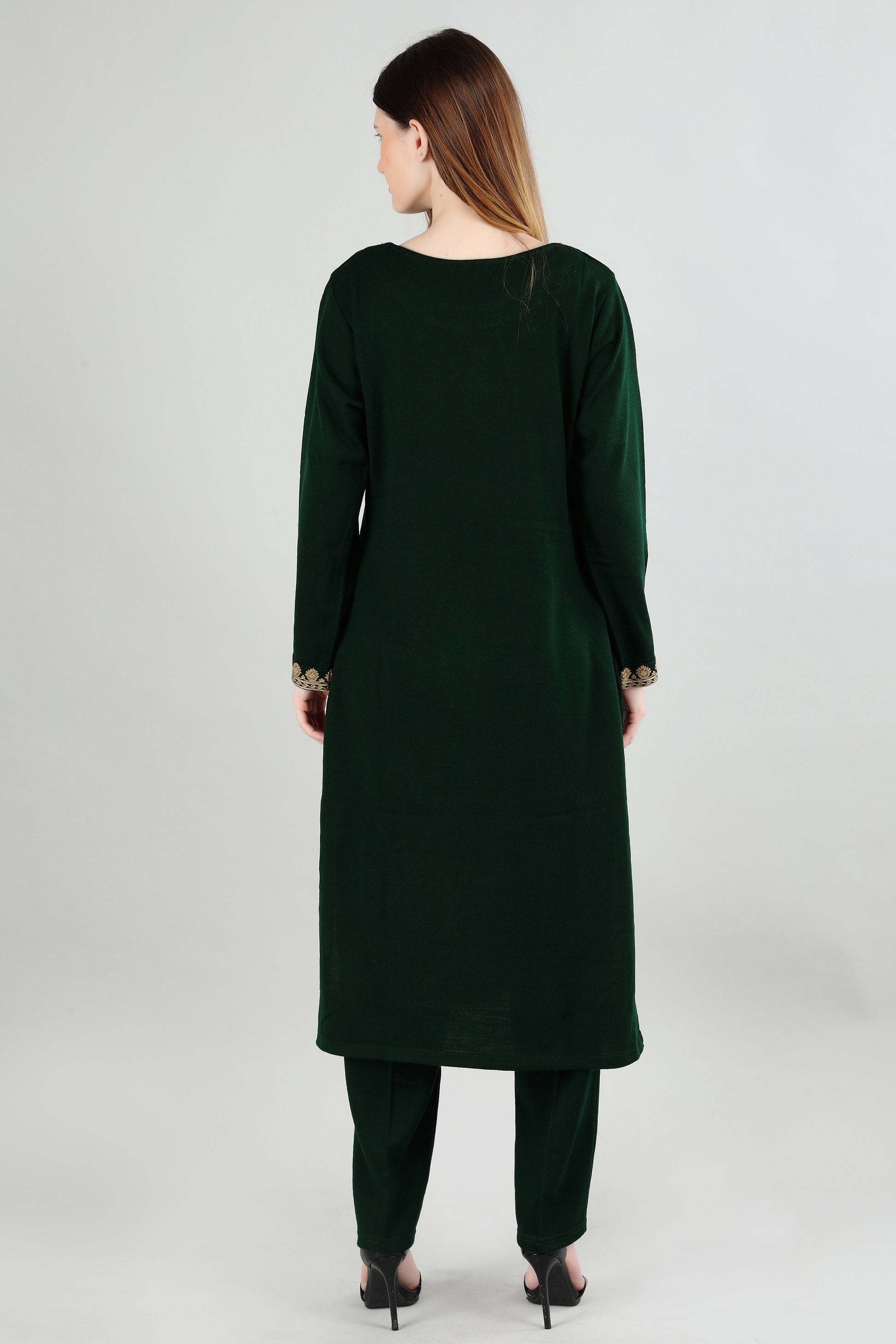 Emerald Green Embroidered Kurti Set with Gold Motifs